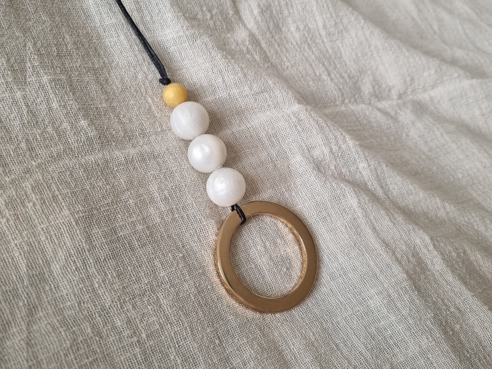Stylish gold ring necklace for nursing mums.